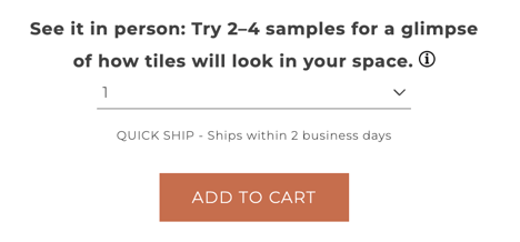 Step 2: Select your preferred tile type or variation, and click “ADD TO CART.” You can add up to five sample pieces to your cart.