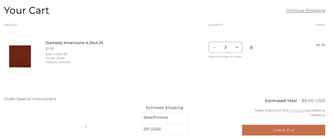 Step 3: Once you’ve chosen your samples, head to your cart to complete checkout.